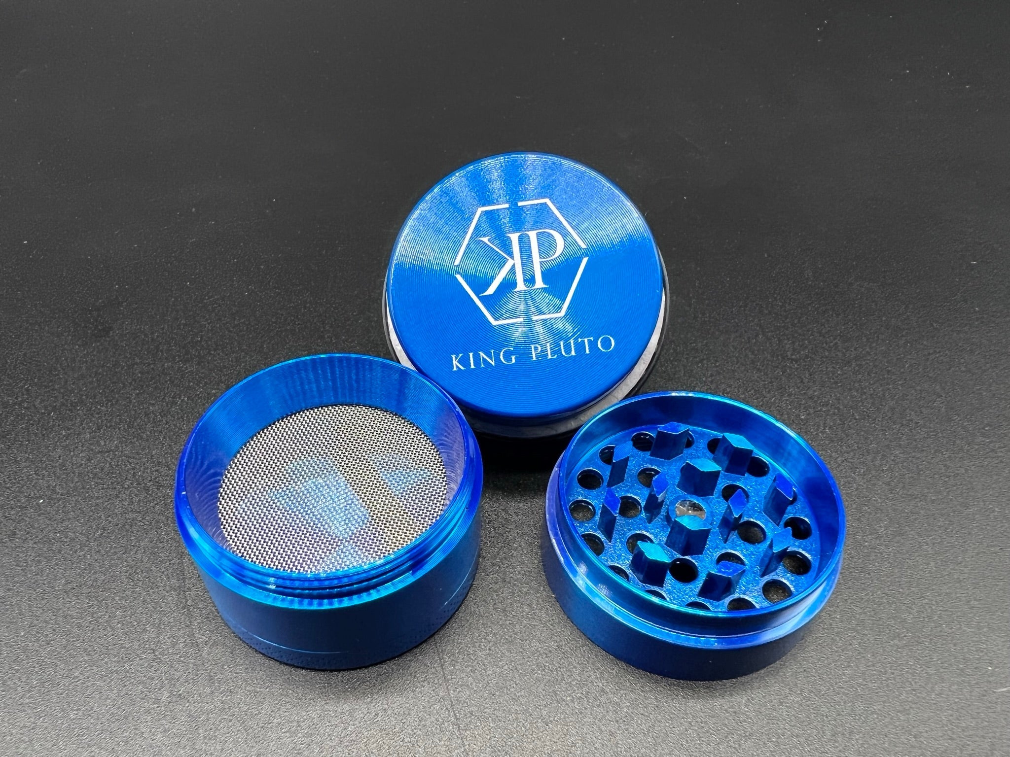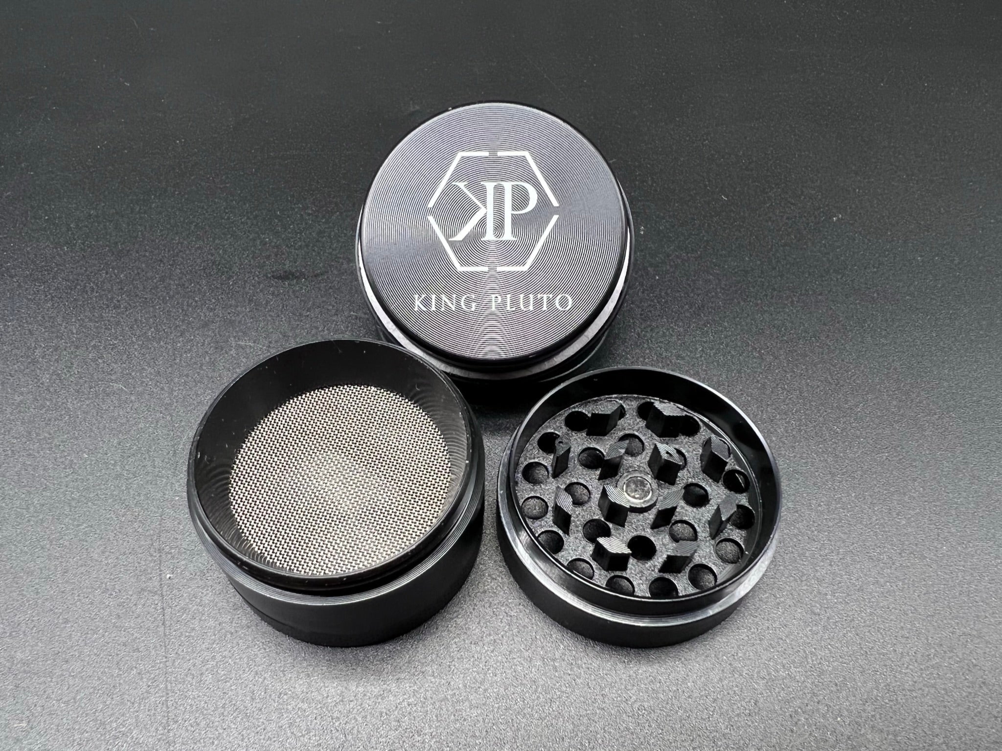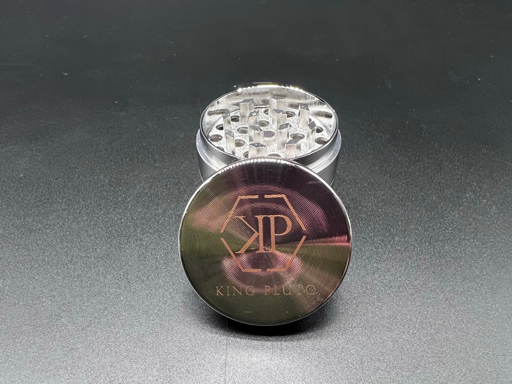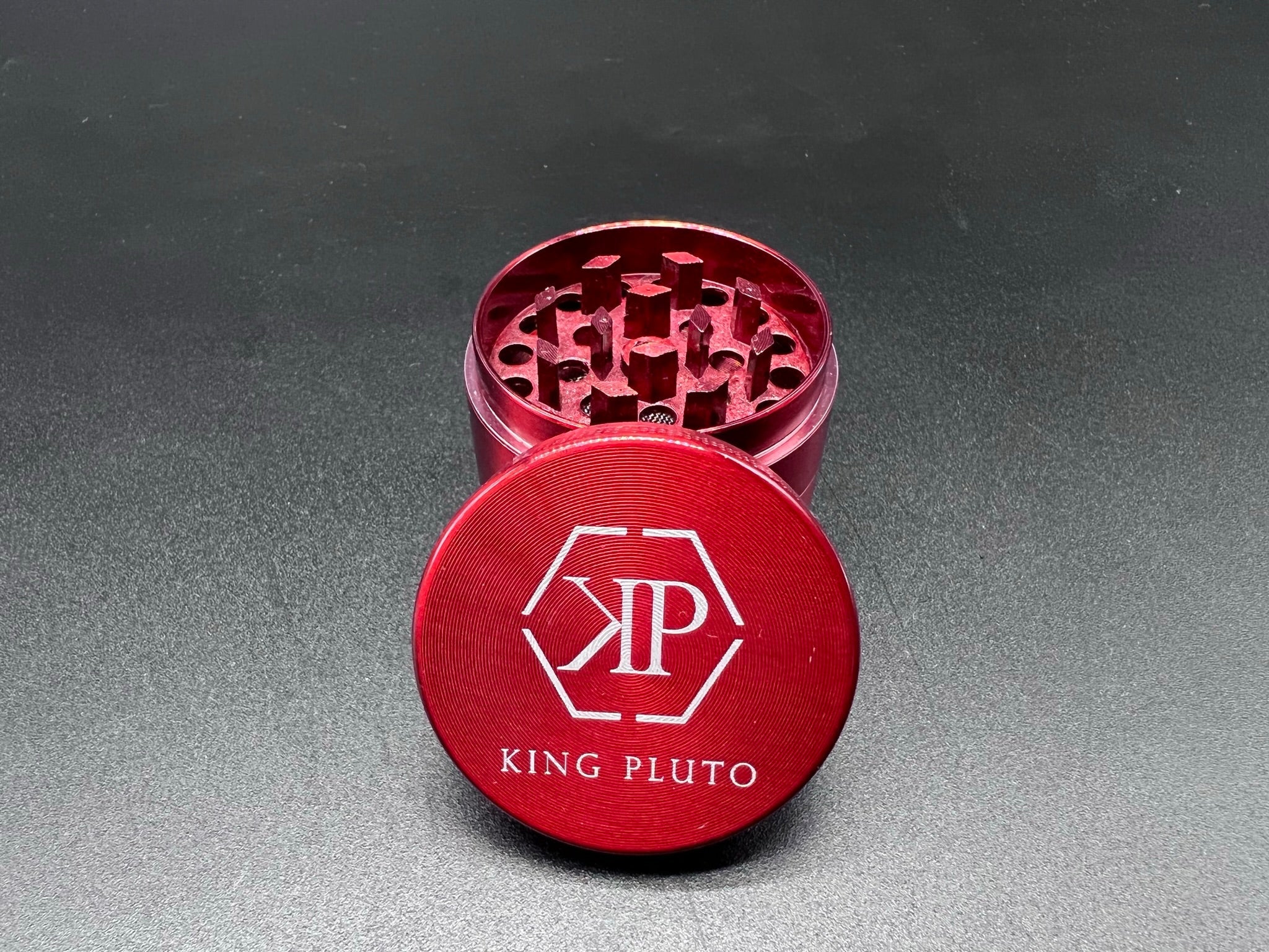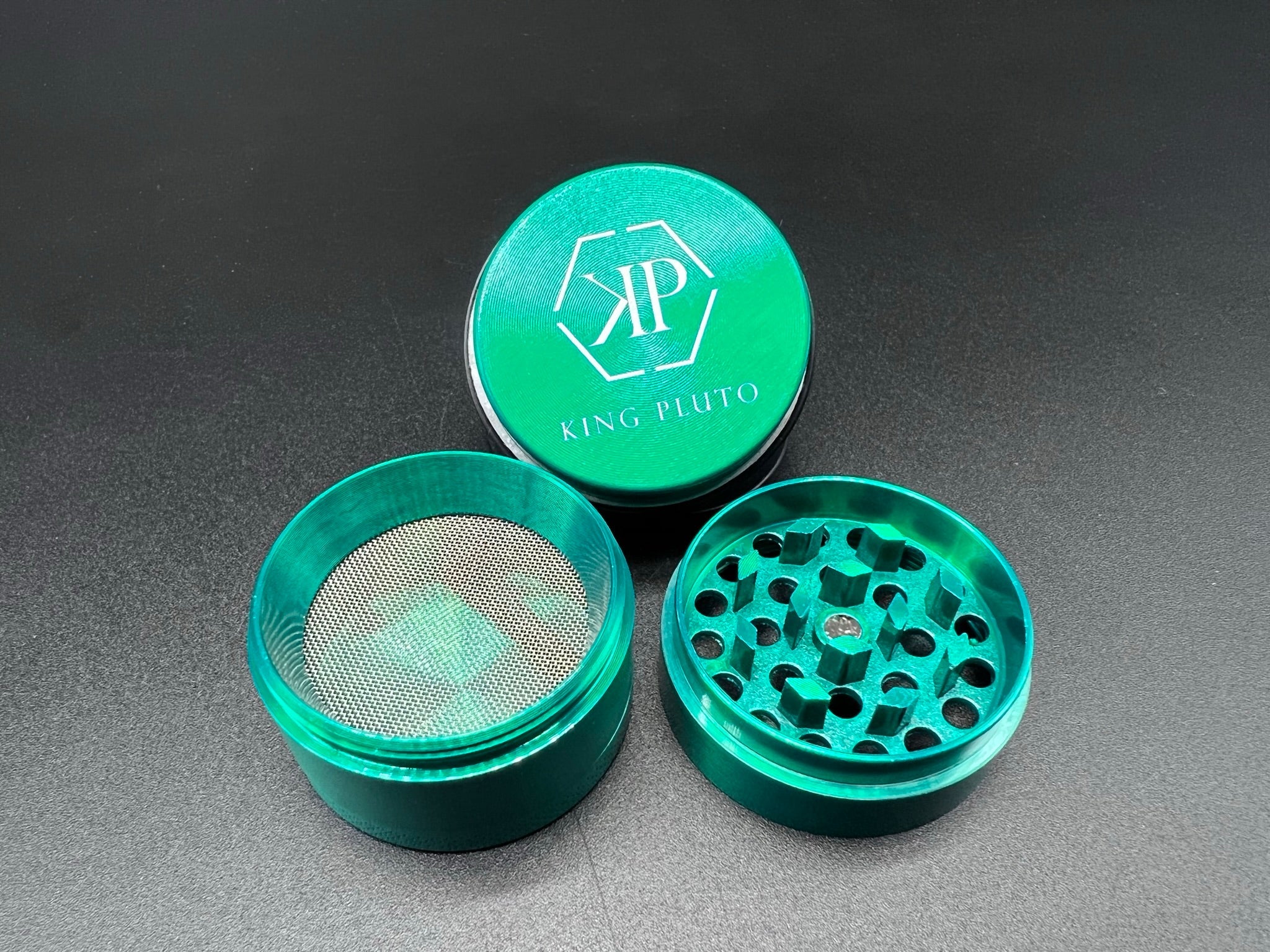 Heavy duty herb grinder with razor sharp teeth and magnetic lid to keep everything in place. All grinders come standard with a scraper to easily handle any herb filtered through the pollen screen.