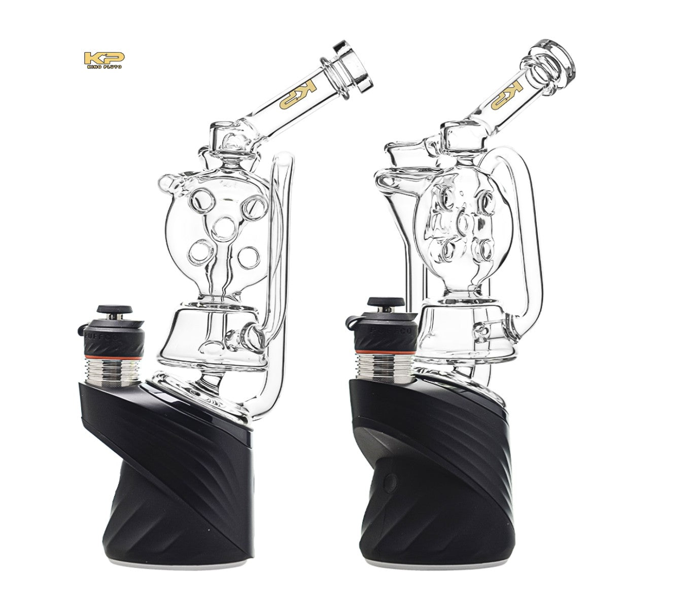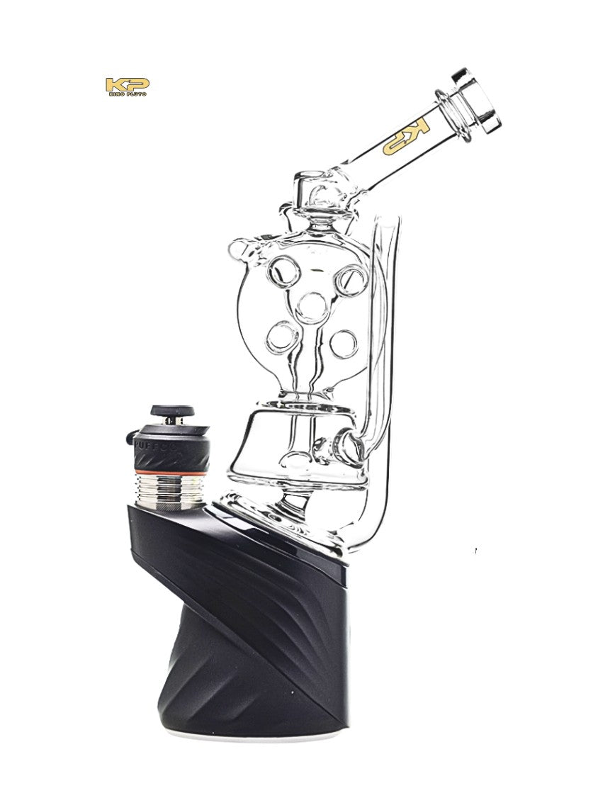 Command smooth, powerful sessions with the 8" Swiss Wheel Side Feeder Attachment from King Pluto. Featuring a dynamic Swiss wheel recycler and a 2-hole diffuser, this clear glass piece delivers ultra-refined vapor with every hit. Custom-made for Puffco and packaged in the iconic King Pluto display box, this attachment blends function, finesse, and a royal touch.