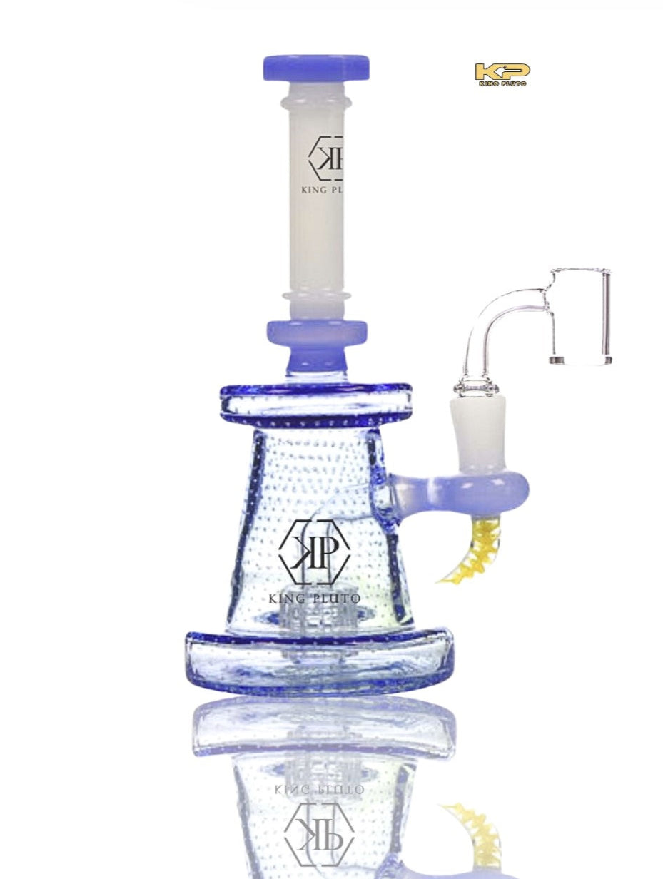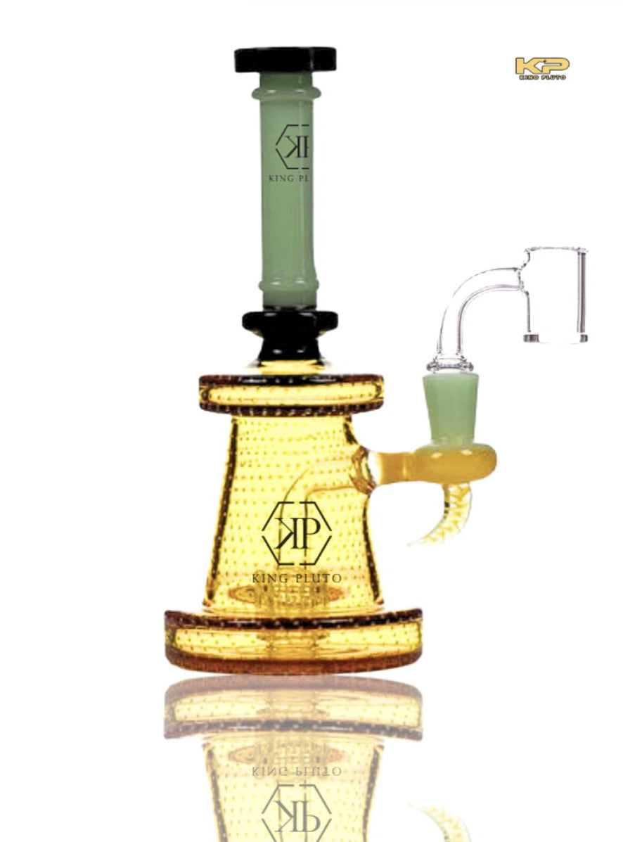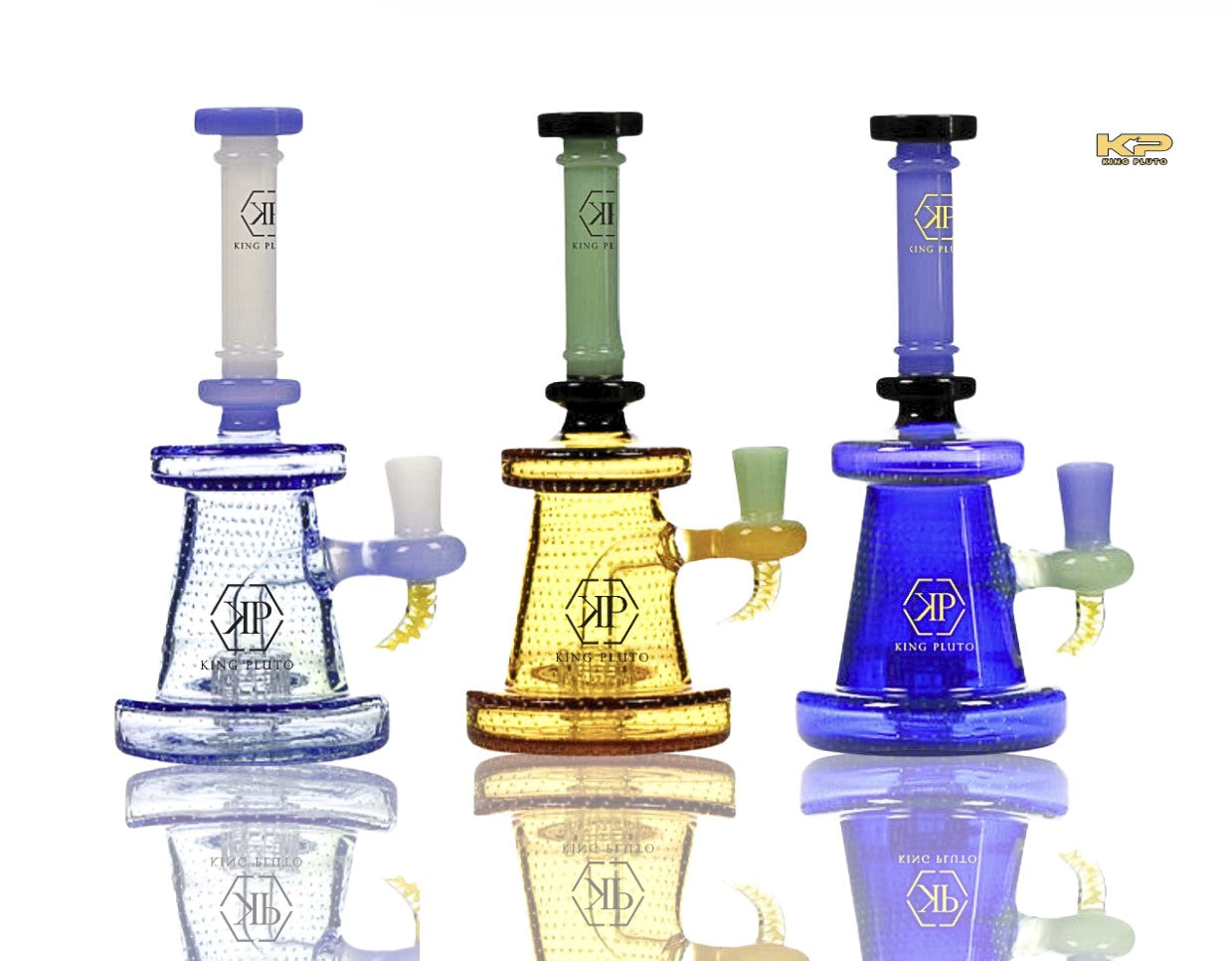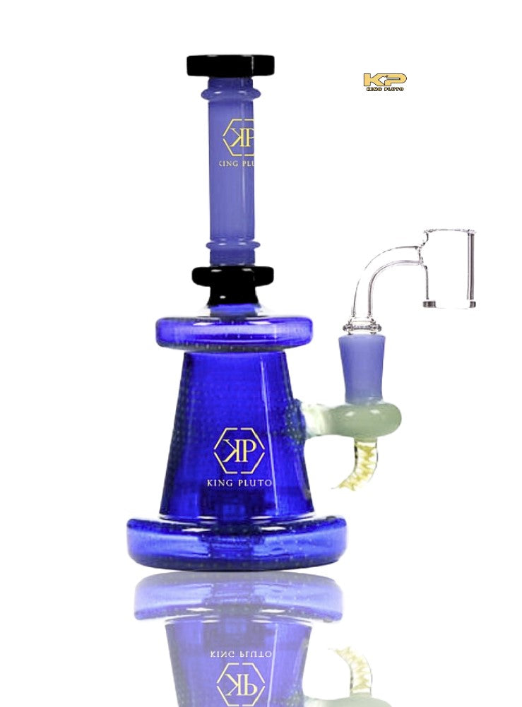 Get your smoke on with King Pluto's Sandblasted Bubble Rig. This multi-colored beauty stands 8" inches tall with a straight sandblasted neck and a bubble design at the bottom. The heavy base makes this beauty hold the rig perfectly. Not only does it come in assorted colors, but KP Premium Banger is also added to give the perfect dabbing experience. Don’t miss out on this beauty!