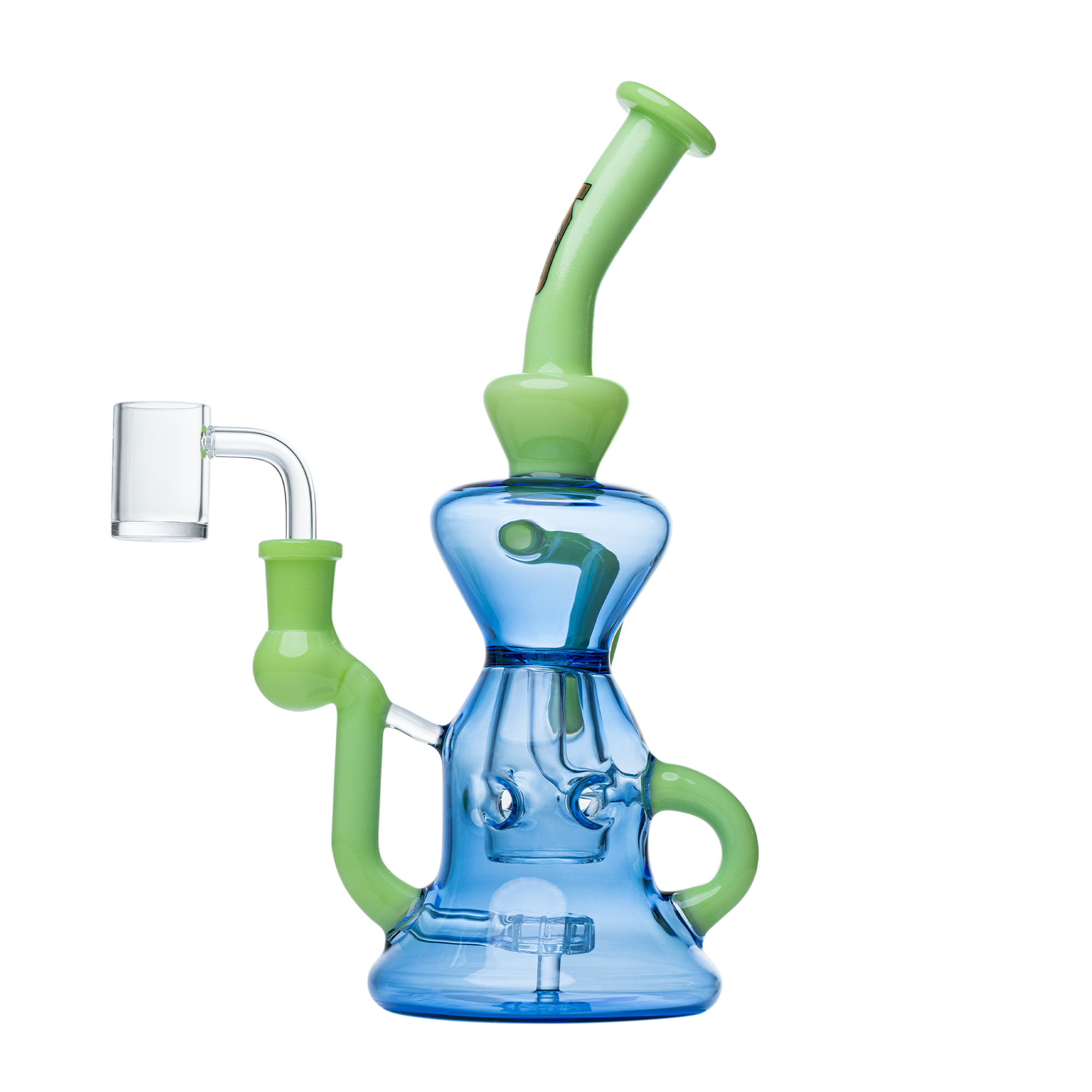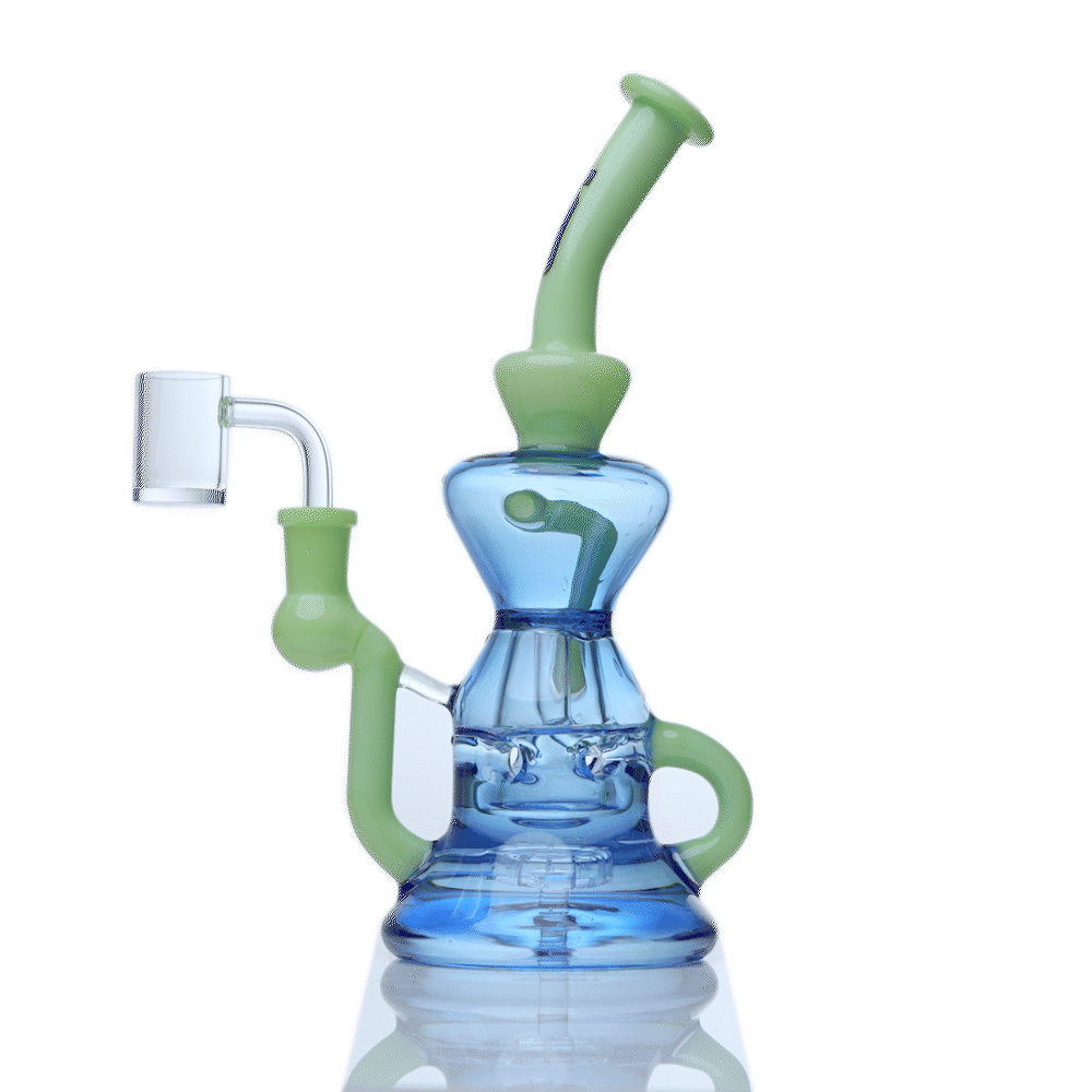 This Tornado recycler will give you the ultra-smooth hit every time you want to enjoy your smoking experience. The recycler features a waffle 4-hole inverted Perc for exceptional filtration and diffusion. Beyond filtering, this recycler also prevents spills and splashes with a splash guard. Overall, this recycler rig will vastly improves your taste and the beautiful features adds more as it comes with a beautiful thick KP Banger.